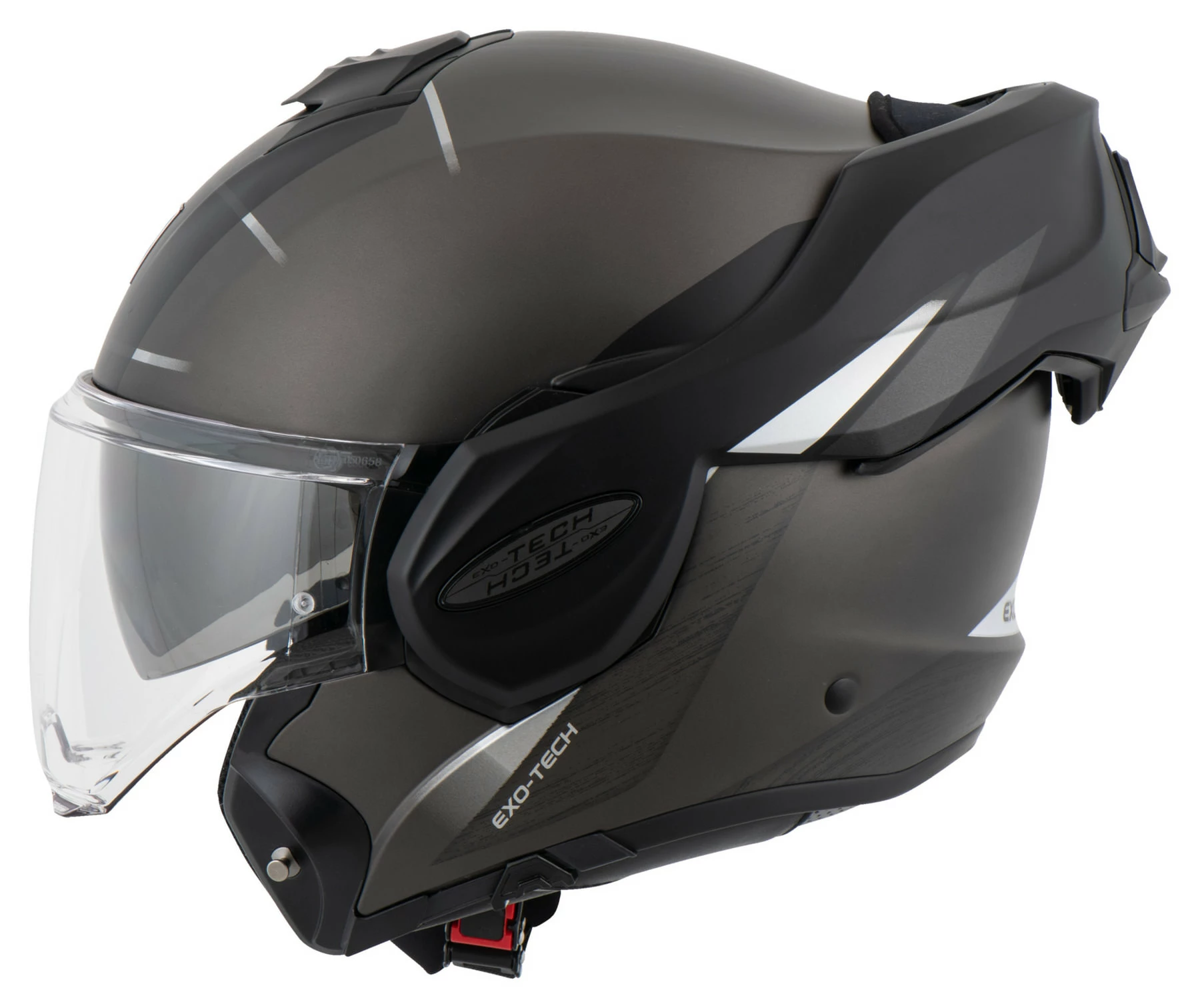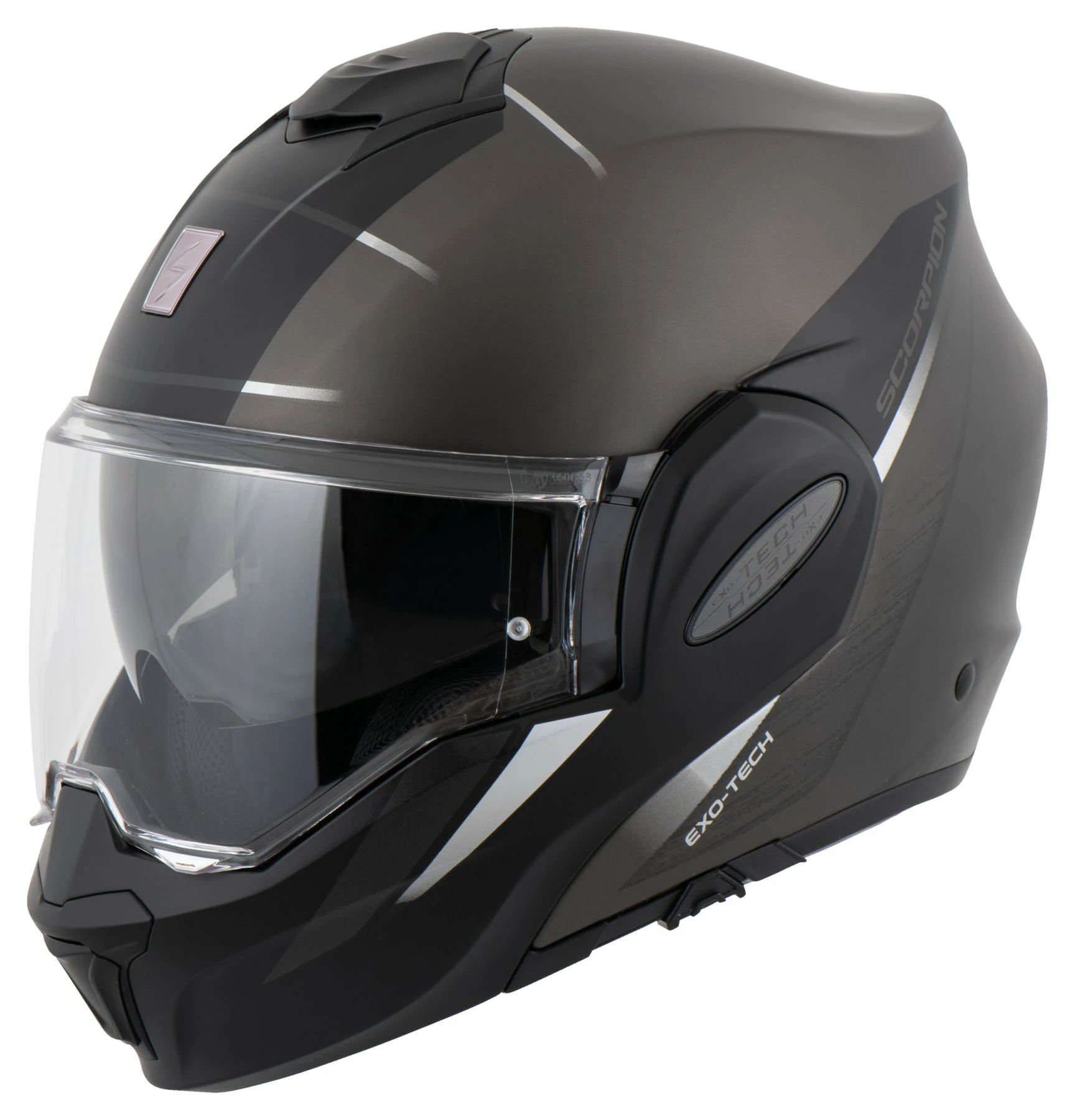 The Scorpion *EXO-Tech*, approved as both full-face and jet (open-face) helmet, takes the development of the Scorpion flipback to the next level. Whether you choose to wear your *Exo-Tech* as a full-face or jet helmet, you can be sure of maximum safety and comfort. All you have to do is push the chin bar of the thermoplastic helmet up over the visor or pull it down into the chin position. It couldn’t be simpler.